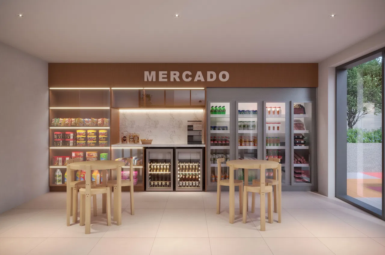 O empreendimento combina praticidade e lazer com uma vasta gama de áreas comuns, incluindo um espaço de coworking, espaço festas com grill, sala de jogos, piscina aquecida com borda infinita, spa e sauna. Além disso, conta com lavanderia, pet place e mercado, proporcionando conveniência e conforto no dia a dia.