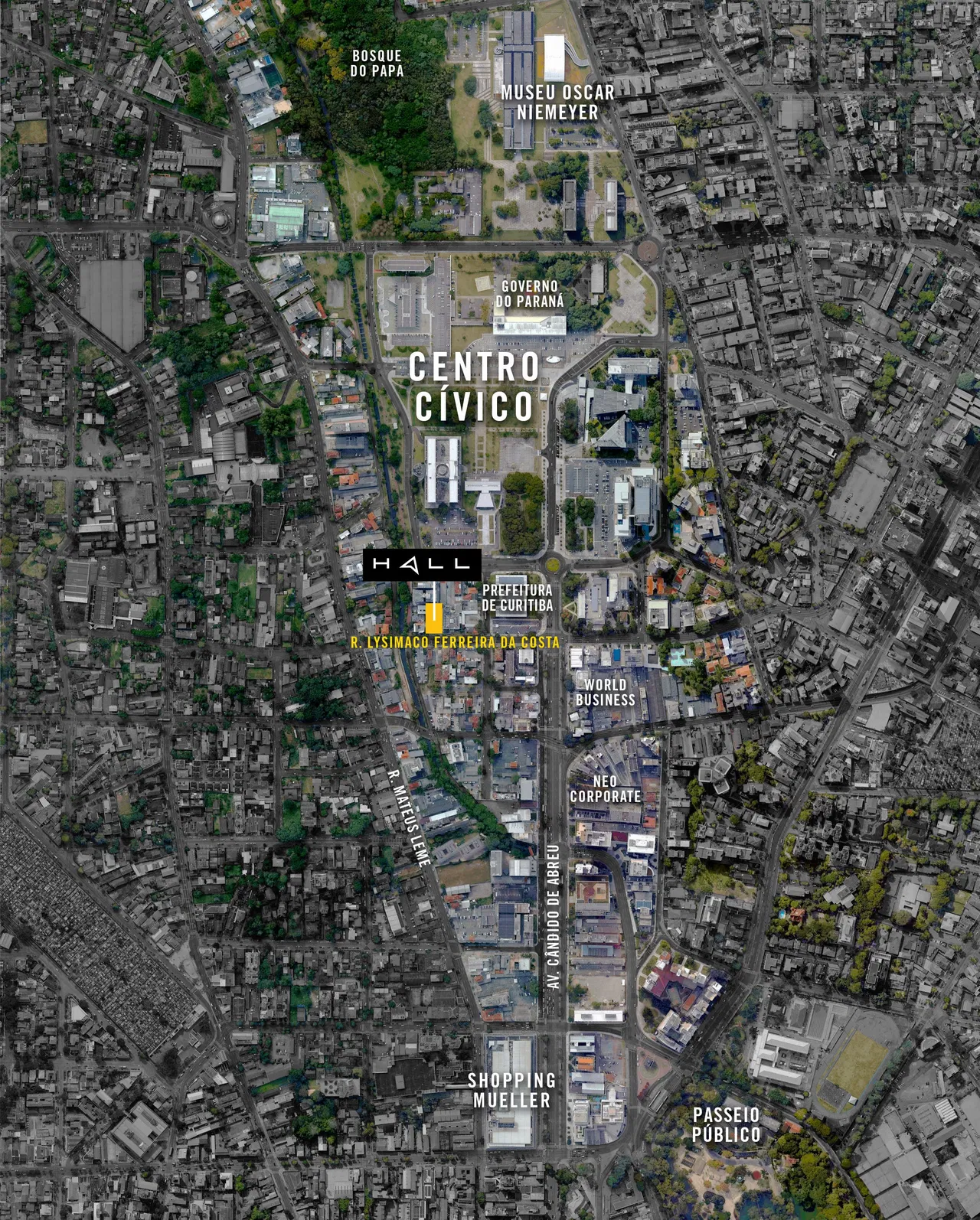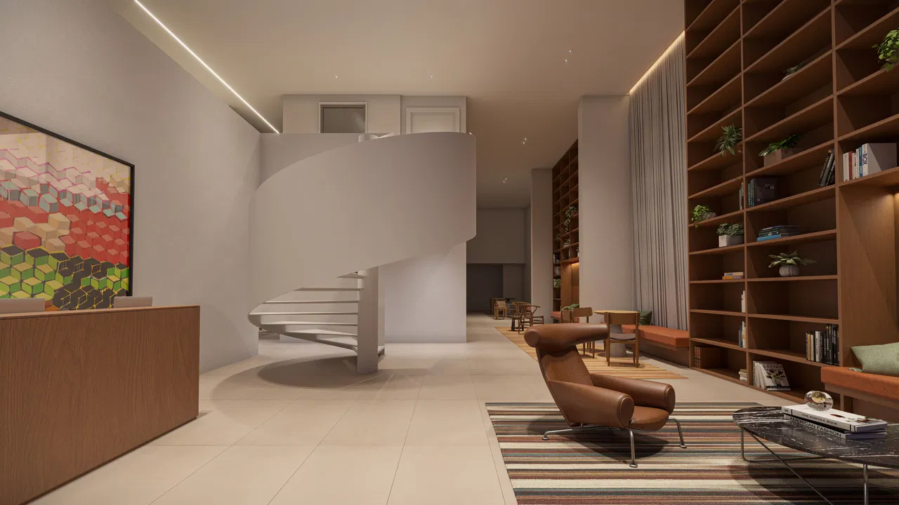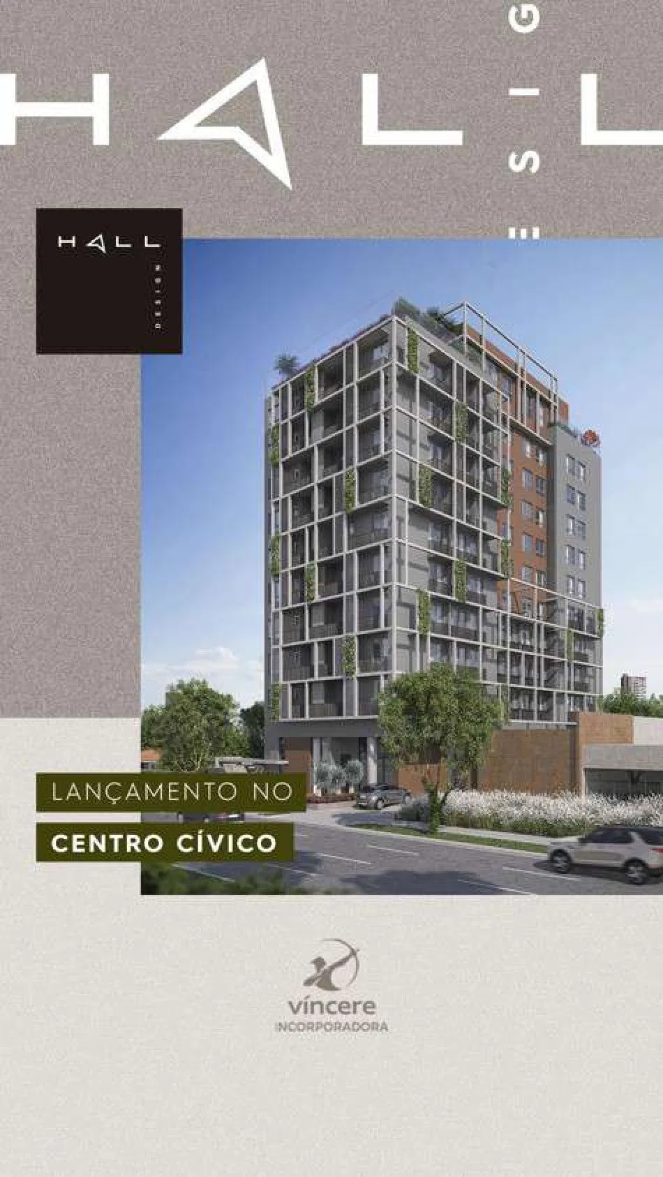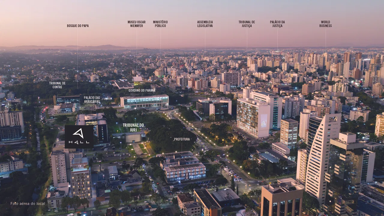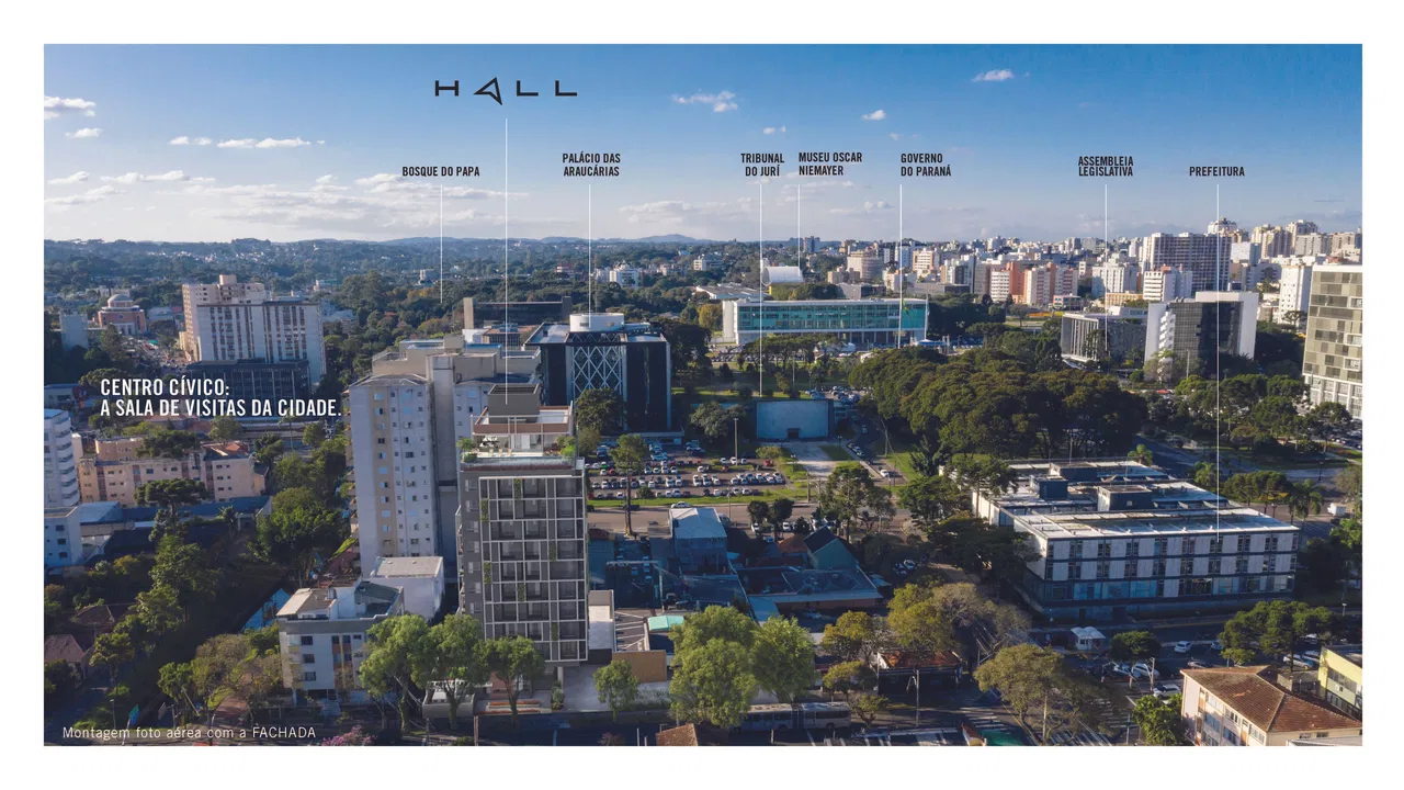 O Hall Design, localizado no bairro Centro Cívico em Curitiba e desenvolvido pela construtora Víncere, oferece uma gama de studios e apartamentos compactos com áreas que variam de 17 a 64 m².