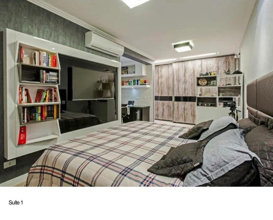 No subsolo, há uma grande área de academia e 03 banheiros, sendo um com chuveiro que atende à área da piscina. A garagem fechada comporta 04 carros. No piso superior, um espaçoso escritório de 85 m², equipado com 03 mesas de trabalho e mesa de reuniões, possui porta de acesso blindada e sacada panorâmica, além de um espaço de 90 m² destinado a home theater.